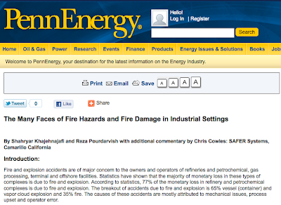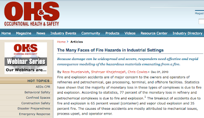 Key members of the SAFER Systems team, Reza Pourdarvish, Shahryar Khajehnajafi and Chris Cowles, recently wrote an article on fire hazards in industrial settings, and it was picked up by two key trade publications: Occupational Health & Safety and Oil, Gas & Petrochem Equipment.